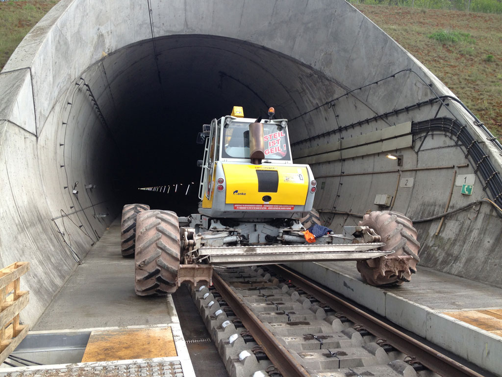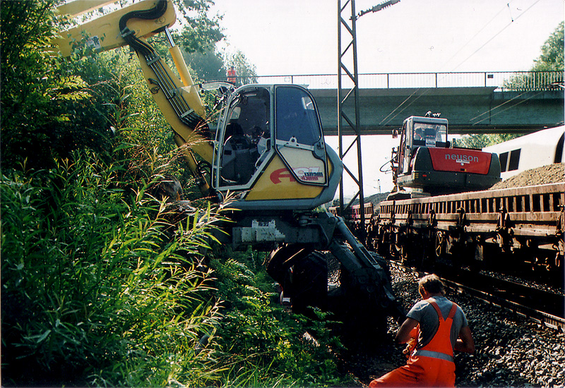 Die Vielseitigkeit und einzigartige Bauweise unserer Schreitbagger ermöglicht ebenso den Einsatz bei Gleisbau-Arbeiten. Flexibel und zuverlässig sind diese Maschinen vor allem für die Nutzung beim Gleiseinzug – aber auch zur Tiefenentwässerung – die erste Wahl.