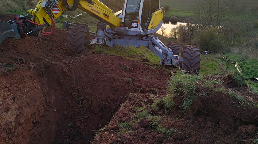 Gegründet 1990 als Erdbau-Firma, fungiert unsere Unternehmen heute hauptsächlich als Spezialist für Schreit- und Spinnenbagger-Einsätze in ganz Deutschland. Seit 2001 führen wir bundesweit (mit eigenem Tieflader) Spezialarbeiten mit unseren Baggern aus. Aktuell sind wir im Besitz von zwei Schreitbaggern Menzi Muck M545x 4×4 Allrad.